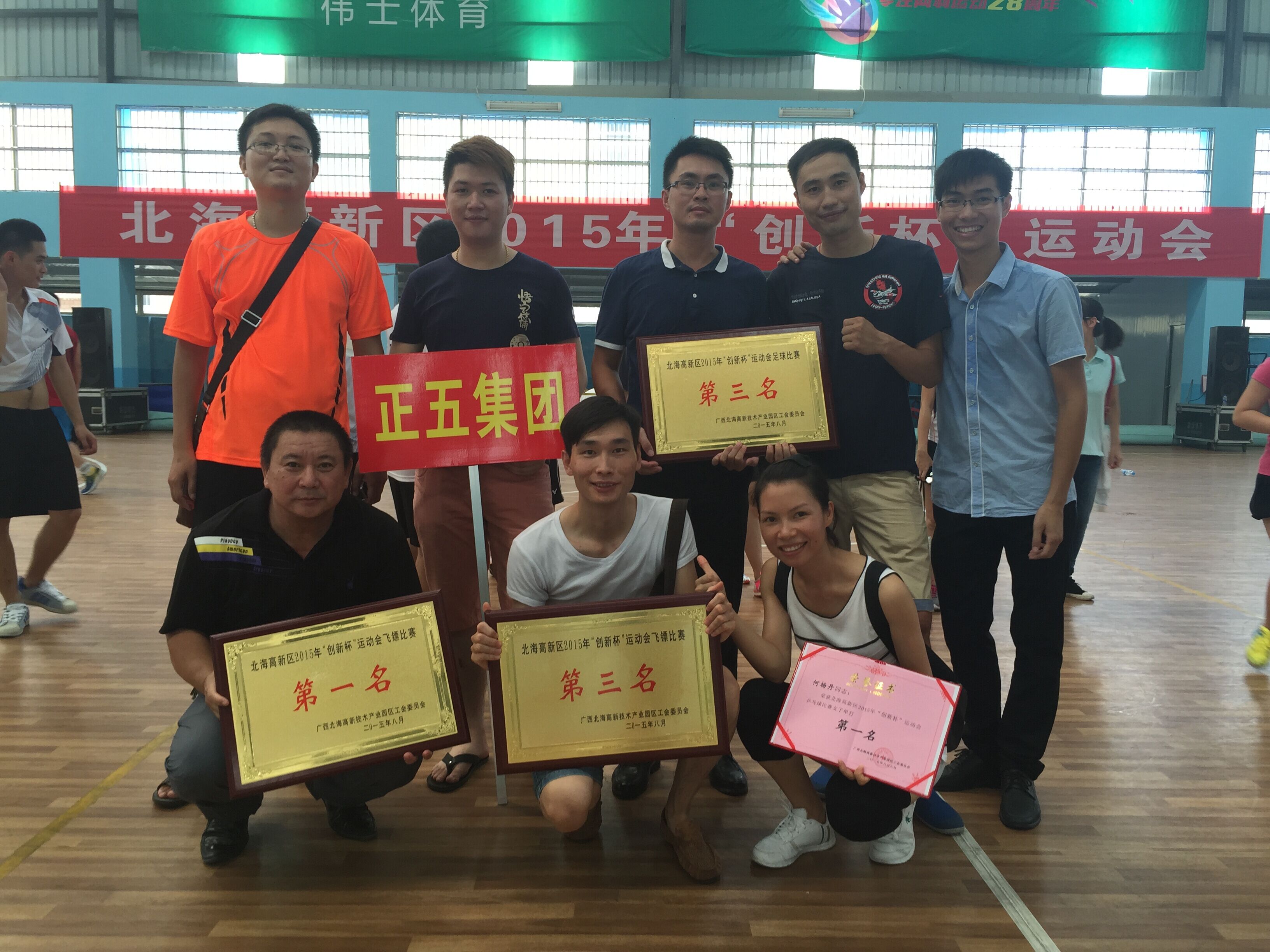 北海高新區(qū)2015年“創(chuàng)新杯”于8月1日至8日成功舉辦。正五集團(tuán)組織旗下正五海產(chǎn)公司、正五貸款公司、正五地產(chǎn)公司等企業(yè)的員工組隊(duì)參加羽毛球、氣排球、乒乓球、足球等各項(xiàng)比賽活動(dòng),取得了碩果頗豐的良好佳績(jī)。