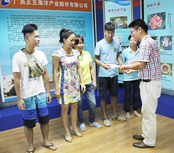 “凡入職轉(zhuǎn)正工作1年以上的員工子女考上大學本科,每人可憑入學錄取通知書獲得1000元的獎勵。”自正五海產(chǎn)公司《職工子女考上大學本科入學獎勵辦法》實施3年來,已經(jīng)對10名考上大學本科的員工子女給予了獎勵。2015年獲得此項獎勵的員工子女有:行政部員工莫小蘭的兒子蘇曜考上河池學院、生產(chǎn)部員工楊鳳英的兒子張子龍考上長安大學建筑工程學院、生產(chǎn)部員工莫春燕的兒子李顯明考上山西大學。經(jīng)人力資源部逐一核實,上報公司領(lǐng)導(dǎo)批準,決定根據(jù)正五海產(chǎn)公司《職工子女考上大學本科入學獎勵辦法》給予獎勵。座談會上,副總經(jīng)理崔小祥希望即將步入大學校園的大學生在學校里好好學習,不要荒廢學業(yè),學到一技之長,將來報答父母,回報社會。(陳偵梅、蘇強)