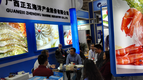 “漁博會(huì)”期間,正五海產(chǎn)公司展出了傳統(tǒng)的生蝦仁系列、金鯧魚及新開(kāi)發(fā)的壽司蝦等十余種產(chǎn)品。正五海產(chǎn)總經(jīng)理崔小祥率領(lǐng)國(guó)貿(mào)部、內(nèi)銷部等相關(guān)部門的員工與來(lái)自世界各地的客戶進(jìn)行洽商。正五海產(chǎn)公司豐富多樣的產(chǎn)品讓眾多國(guó)內(nèi)外客戶駐足詢問(wèn),產(chǎn)品的質(zhì)量更得到了客戶的好評(píng)和業(yè)界的一致認(rèn)可。