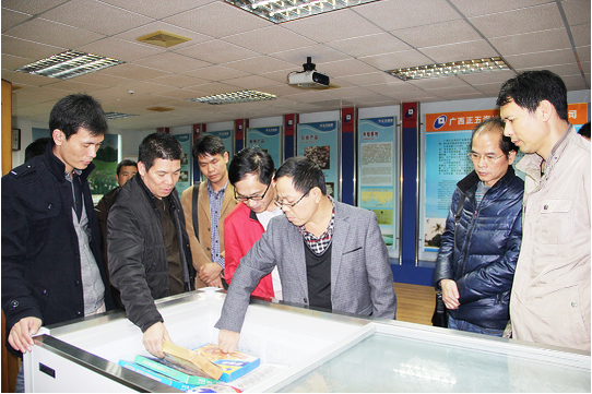 防城港市科技局副局長許炳杰率隊(duì)在北??疾炱陂g,于3月10日來到正五海產(chǎn)公司考察國家級高新技術(shù)企業(yè)建設(shè)的經(jīng)驗(yàn)和做法。北海市科技局副局長周國福等陪同。
